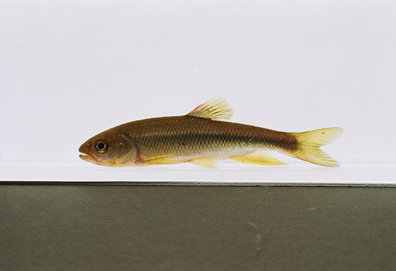 背中は黄褐色で、体側には太い紺色の帯がある。