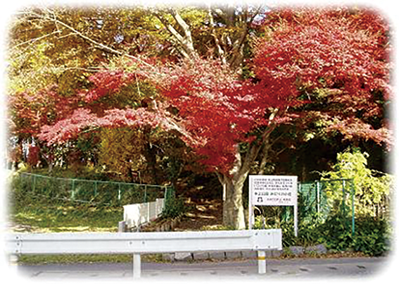 9.みどりの小径 この施設は、井上区創設70周年を記念して、区民の協力の下に平成17〜18年の2年間をかけて、井上公園に隣接する森の中に切り開かれた散策道路として設置された。四季折々に花開く、はなもも・しだれざくら・あじさい・すいせんなど。中でも秋のもみじは素晴らしく、錦秋とはこのことかと実感させてくれる。今も貴重な里山として毎月区民の手で維持整備されている。 MAP