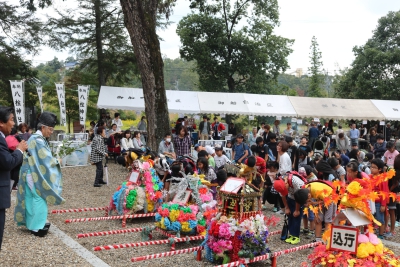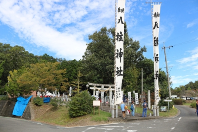 8.御船八柱神社 御船町東部の高台に位置し、祭神は天照大神の8人の御子で八柱神社として祀られている。創立年代や由緒などは残されていないが、口明塚に始まり御船川沿いに定住した先人達が集落が大きくなるにつれて、この地に鎮守の神として神社を創建したと言い伝えられている。木札による実証として、鳥居が宝暦2年 (1752)を始めとして7度改築されている。 例年10月 例大祭餅投げ 大のぼり 巫女舞 子ども神輿 年末の初詣の様子 MAP