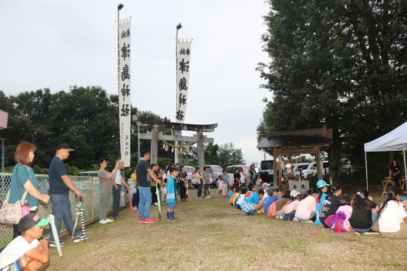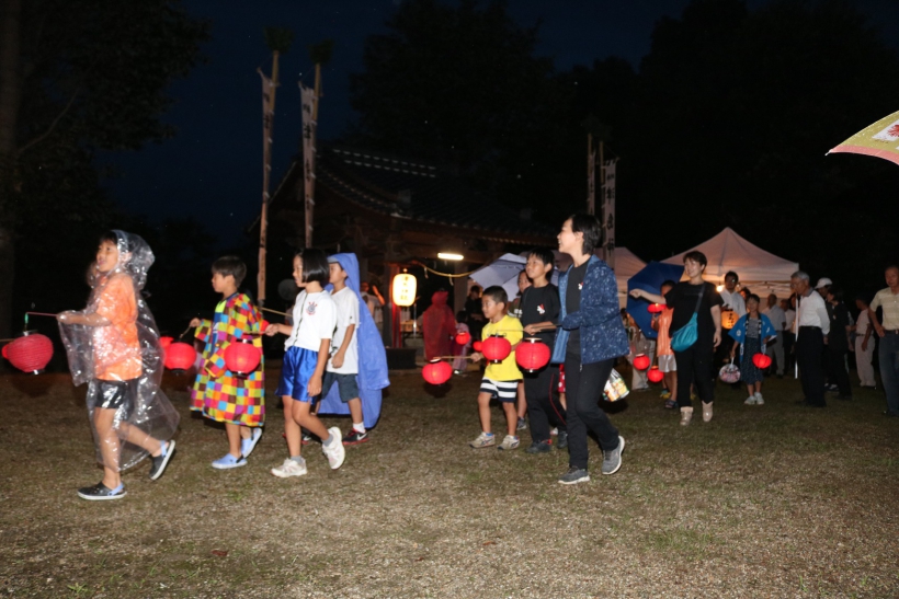 12.津島神社 津島神社は、御船町山屋敷の御船こども園に隣接した高台に祀られ、古くから住民に「お天王さん」と呼ばれ親しまれている。祭神は、須佐之男命(すさのうのみこと)。昭和58年に御船保育園(御船こども園)園舎改築に伴って、現在の位置に移し、新たに本殿を新築した。祭礼は毎年7月に盛大に行われている。 例年7月の祭礼 ちょうちん行列 MAP