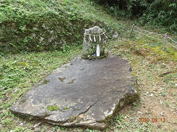 16.御舟石(おふないし) 御舟石は、伝えによれば、ある年洪水があり猿投の神が御舟に乗って御船川を下られた折、2柱は猿投山上にとどまり、1柱はこの地に来られた。この石は神の召された舟であるという。昭和2年三河線工事の折、御舟石が埋められそうになったためか作業員が負傷するなど事故が多発したため、そのまま原位置に保存し「御舟石」の碑を建立した。 MAP