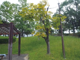 ムクロジ科の落葉高木。花穂が大きく真っ直ぐ20〜30m伸びる。5〜6月頃に花が咲く。
