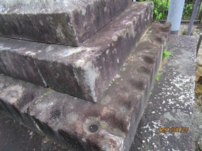 常夜灯の一番下の段には窪んだ穴がいくつかあります。なぜこんなところにあるのかは、わかりません。子どもの頃にこの穴に草を入れてとんとんと突いて遊んだことがあるそうです。