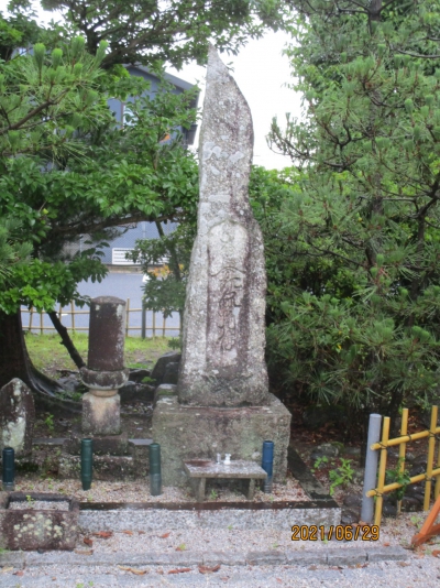 この石塔は、昔からここにあったものではなく、飯田街道沿いにあった。四郷小学校南に、三叉路があり、橋の改修の際に移設された。徳本上人の筆によるもので「南無阿弥陀佛」と書かれている。地元の人は、この塔を「とくおんさん」と呼んでいた。徳本上人は、岡崎の「くほん院」というお寺の2代目の住職で、この場所にいたのは3代目の「くどうさん」だったが、地元では「とくおんさん」(徳本さん)と呼ばれていました。彼はこの地に立って、善光寺道を行きかう人々にある時はお金を、ある時は物を恵んで旅人の無事を祈り励ましていたそうである。